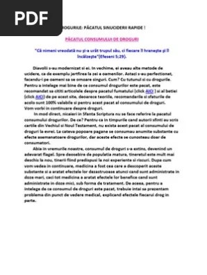 Nu este vindecare în trupul meu de la faţa mâniei tale;.. Pacientul se deschide şi spune care sunt elementele pozitive sau negative ale consumului de droguri. Postare mai nouă postare mai veche pagina de pornire. La o săptămână după această întâmplare, mă anunță colegul meu, cel dependent de droguri, că are un examen foarte greu și că are nevoie de mine să mă rog pentru el.