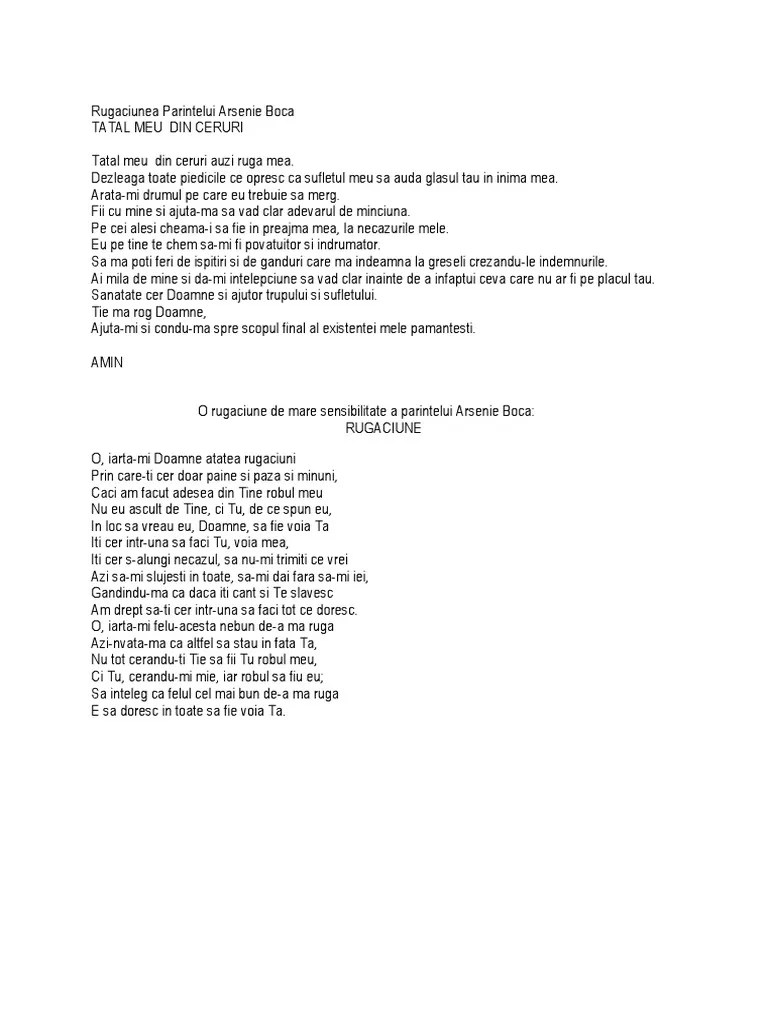 Rugaciune de dimineata scrisa de parintele arsenie boca.. .. (ieromonahul arsenie boca) sarabatoarea este manifestarea faptelor bune, dispozitia evlavioasa a sufletului si o viata ireprosabila.